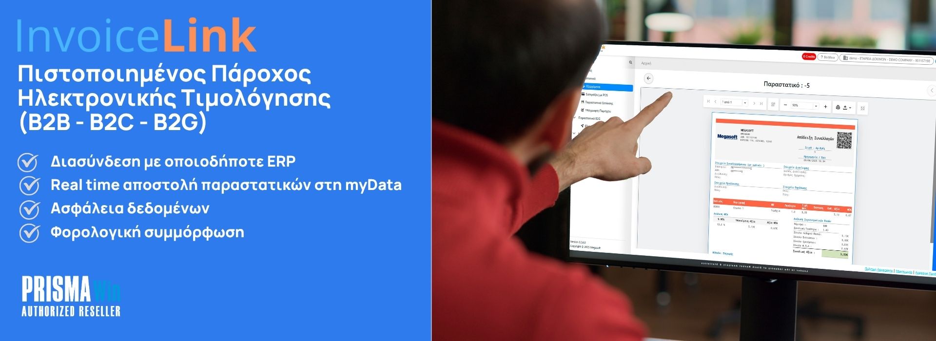 H Megasoft είναι έτοιμη να ανταποκριθεί στα νέα δεδομένα και να υποστηρίξει τις επιχειρήσεις πελάτες της ενημερώνοντας της εφαρμογές τους με όλες τις αλλαγές που φέρνει η νέα ψηφιακή πλατφόρμα myDATA της ΑΑΔΕ, ώστε να λειτουργούν σύννομα απολαμβάνοντας όλα τα πλεονεκτήματα που φέρνει ο ψηφιακός μετασχηματισμός.